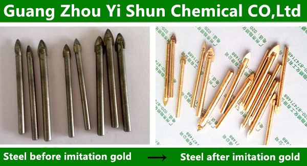 3. Iron and steel artifacts after degreasingrust removing and polishing are immersed in the imitation gold work liquid for 1-3 minutes, you can take out the work piece and wash immediately.
