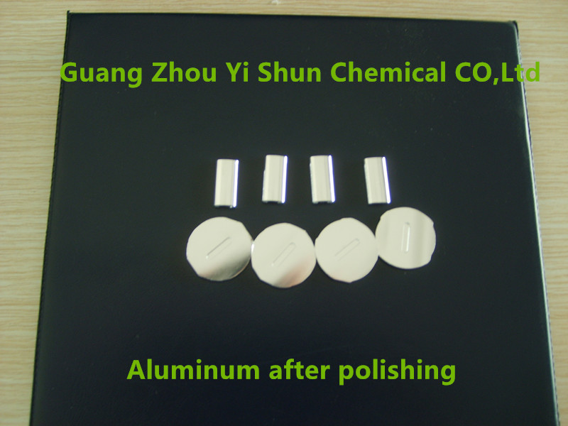 Polishing Agent for aluminum material,Brightening Agent,Aluminum cleaning Agent Polishing Agent for aluminum material,Brightening Agent,Aluminum cleaning Agent 1.Product number: Q/YS.211 (Yi Shun brand) 2.Product usage: This product is suitable for polishing of all kinds of aluminum alloy. The operation is simple. You need stick to a little polished agent with a cloth on the surface of the aluminum and wipe until the product bright. This product can be used in the doors and windows, and fixed aluminum alloy material, polished aluminum parts, can make it remain unchanged color for a long time. 3.Usage method: ⑴Take a small amount of aluminum polish agent with a soft cloth on the surface of aluminum. Wiping 1-2 minutes, you can make the aluminum bright. ⑵Washing. 4.Matters needing attention: If there is precipitation in the barrel, please stir evenly and then use without affecting the use effect. Other processing:Aluminum surface treatment agent series、Aluminum Antique Agent、Cast Aluminum Cleaning Agent、Environmental protection chemical plating nickel liquid (super-concentrated)、Gold colorant of aluminum、Brass Green Chemical polishing Agent
