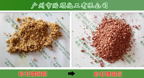 噴鍍型化學(xué)鍍銅水 一、 產(chǎn)品編號:Q/YS.121(貽順牌) 快速鍍銅 化學(xué)鍍銅工藝 二、 產(chǎn)品性能和用途: 本產(chǎn)品廣泛用于大型物件,石材,石像,包括塑料,樹脂,如大型雕像,雕塑,大型工藝品等非金屬及金屬表面鍍銅,只須噴鍍,不須通電,簡單方便,經(jīng)濟而省時省力,鍍出的銅層為紫銅(粉紅色),可用于仿古銅。 三、 產(chǎn)品指標(biāo): ① 產(chǎn)品由A,B兩液組成,以A:B:水=1:2:3配制。 ② A劑為蘭色透明液體,B劑為透明淺黃色液體。 ③ 比重>1.0 ④ PH值>9 四、 使用方法: ① 對于金屬表面,如鐵,鎳表面,應(yīng)先對鍍件進行酸性話化再噴鍍銅。 ② 對于非金屬表面,如大型石材,石像,塑料,樹脂等,則應(yīng)經(jīng)過下列處理: A. 粗化,打磨,整理,水洗等,使表面均勻而粗糙。 B. 活化劑活化后自然晾干。 C. 噴鍍化學(xué)鎳,使表面立即形成金屬鎳層。 D. 水洗后,立即噴鍍銅,使工件表面很快鍍上一層粉紅色的金屬銅。 ③ 噴鍍銅的配制:A和B兩劑分別加熱到60℃,再按A:B:熱水=1:2:3比例混合并裝入噴霧器馬上使用,配制好的鍍銅水應(yīng)在5分鐘內(nèi)全部用完。